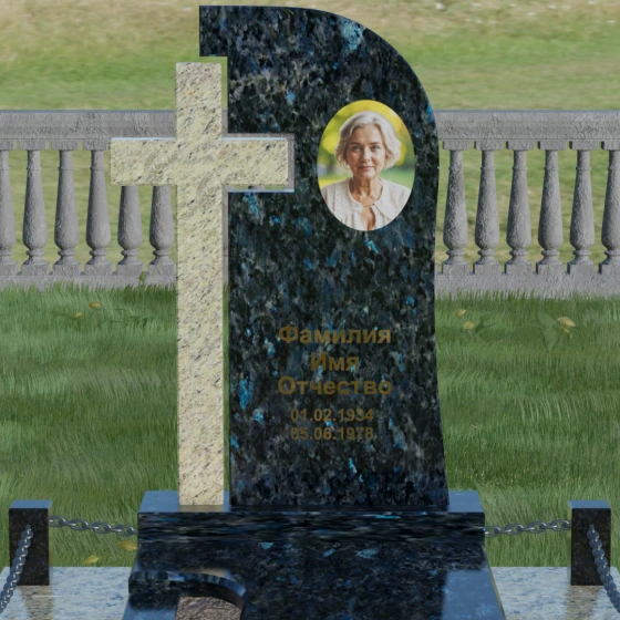Каждый элемент этого надгробия несет в себе скрытый смысл. Высокий крест, интегрированный в саму структуру камня, выступает символом духовного покровительства и незыблемой веры. Асимметричная форма стелы олицетворяет жизненный путь, который никогда не бывает абсолютно ровным, но всегда стремится вверх, к свету. Массивное основание и каменное ограждение с цепями символизируют крепость семейных уз и нерушимую границу между суетным миром и вечным покоем. Эта форма вызывает чувство защищенности и монументальности, подчеркивая, что память о дорогом человеке так же тверда и вечна, как сам гранит.