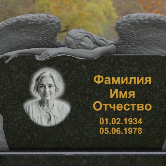 Оформление: Благодаря большой площади горизонтальной плиты, эта модель идеально подходит для размещения крупного художественного портрета и каллиграфических надписей. Мы рекомендуем использовать глубокую гравировку с последующим покрытием сусальным золотом или «под золото», что в сочетании с темными видами гранита подчеркнет статусность и величие монумента.