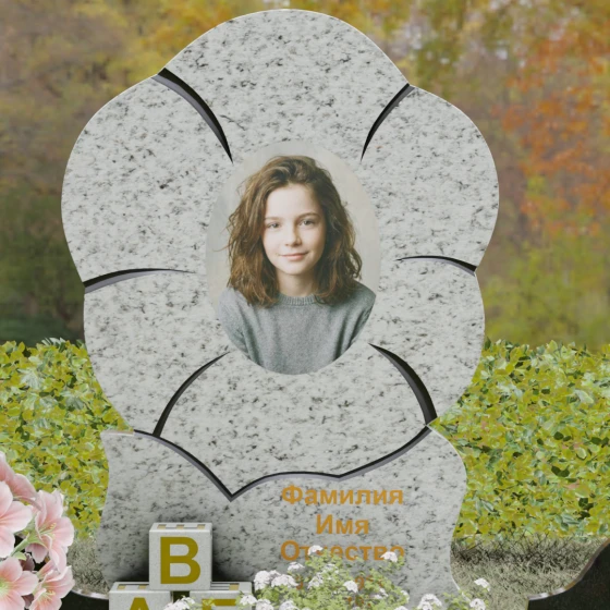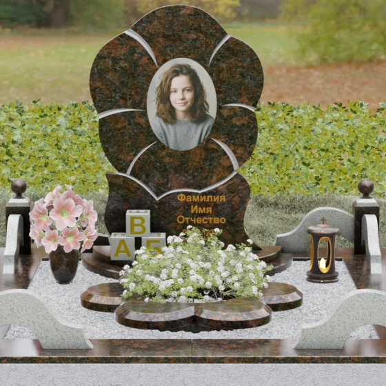 Каждая деталь этого проекта наполнена глубоким смыслом. Цветок в мемориальной пластике традиционно символизирует чистоту души, её расцвет и вечную весну в ином мире. Плавные, текучие линии боковых граней олицетворяют покой и отсутствие земных тревог. Декоративные резные блоки у основания напоминают о начале жизненного пути, о безмятежности и искренности, что делает эту модель особенно подходящей для увековечивания молодых и светлых личностей. Этот ансамбль создает ощущение защиты и умиротворения, превращая место захоронения в пространство светлой печали.