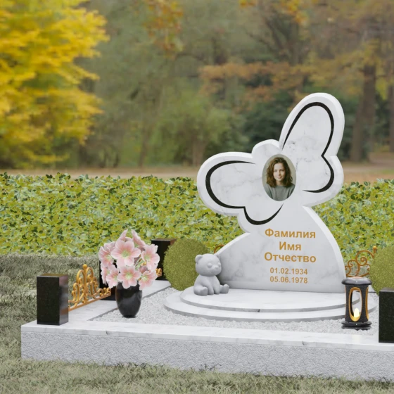 Кому подойдет: Данная модель является универсальным символом нежной привязанности и вечной души. Форма бабочки чаще всего выбирается для оформления захоронений молодых женщин, дочерей или сестер, подчеркивая их хрупкость, красоту и светлый след, оставленный в сердцах близких. В светлых тонах камня (например, в мраморе) изделие идеально подойдет для детского захоронения, символизируя чистоту ангельской души, а в темных гранитах станет величественным знаком памяти о яркой и неординарной творческой личности.