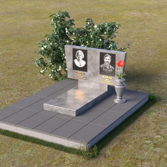 Асимметричная форма стелы не случайна. Она символизирует жизненный путь, который не всегда бывает прямым и предсказуемым. Скошенный угол, напоминающий крыло, несет в себе идею защиты и утешения, а также веру в загробную жизнь. Зеркальная полировка, в свою очередь, отражает свет и символизирует чистоту души и вечную память. Горизонтальная плита, расположенная под стелой, олицетворяет землю, на которой покоится прах усопших, и одновременно служит связующим звеном между земным и небесным мирами. Общий вид памятника создает ощущение покоя и умиротворения, приглашая к тихой молитве и воспоминаниям.