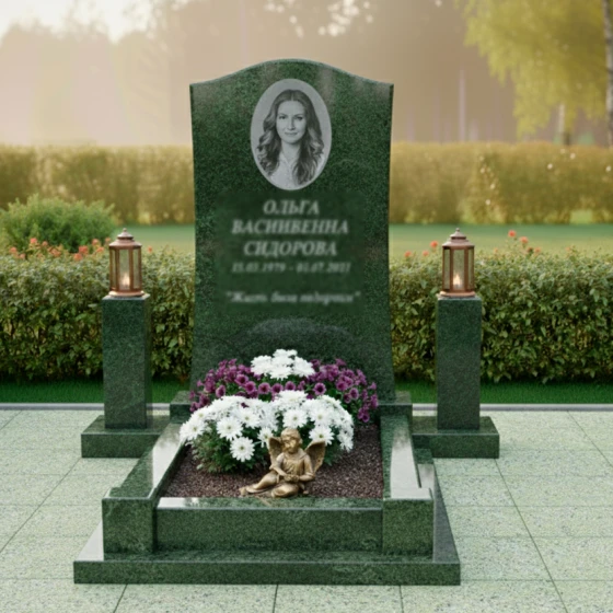 Мы предлагаем эту модель в 8 уникальных цветовых решениях, что позволяет подобрать мемориал, идеально соответствующий характеру и индивидуальности ушедшего. В нашем ассортименте представлены 7 видов гранита: благородный амфиболит с его глубокими темными оттенками, насыщенный Балтик грин, сияющий Блю Перл с его перламутровыми вкраплениями, классический Габбро-диабаз, теплый Дымовский, величественный Лезниковский и светлый Мансуровский. Для тех, кто предпочитает более мягкие и светлые тона, доступен изысканный мрамор Тассо. Такое разнообразие материалов позволяет создать по-настоящему уникальный и персонализированный мемориальный комплекс, который станет достойным символом вечной памяти.
