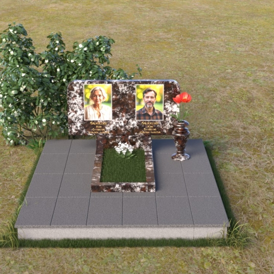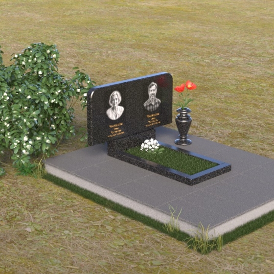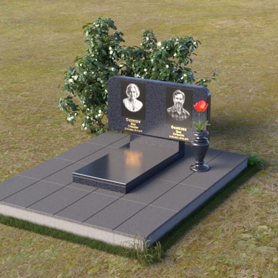 Оформление: Для данной формы стелы идеально подойдет гравировка портретов в овальной или прямоугольной форме. Расположение портретов может быть как симметричным, так и асимметричным, в зависимости от ваших предпочтений. Имена и даты жизни рекомендуется располагать под портретами, используя элегантный шрифт с засечками. Также можно добавить эпитафию, отражающую личность усопшего и вашу любовь к нему.